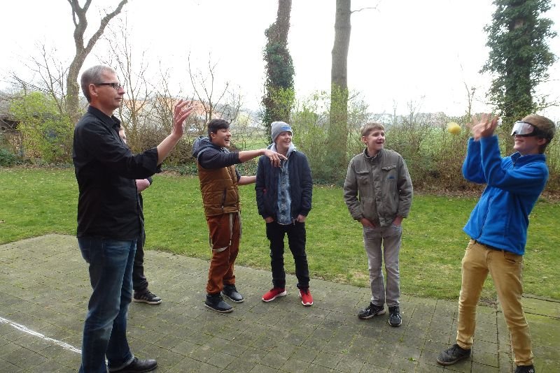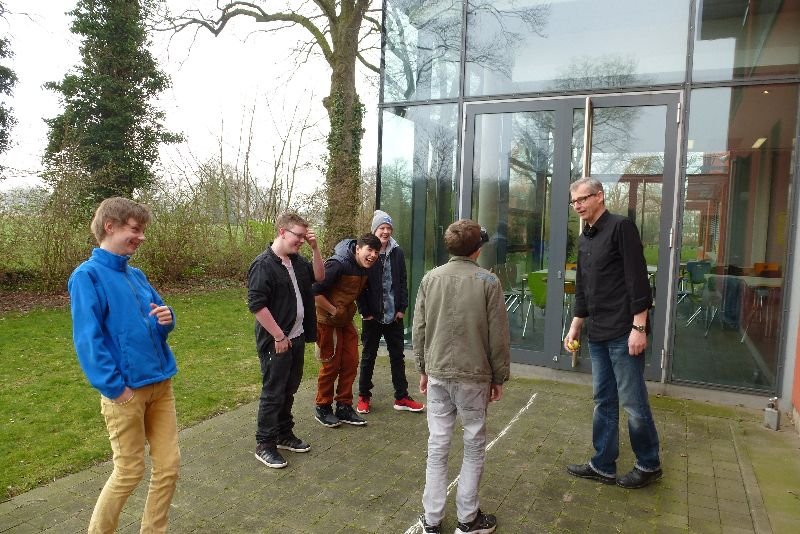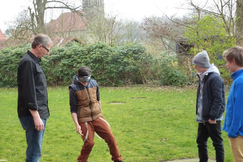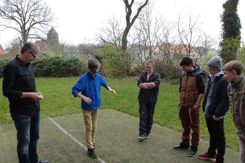 „Und jetzt immer schön an der Linie entlang!“ Die Anweisung von Günter Fehlker ist eindeutig! Leon und Maurice gucken skeptisch; auch im täglichen Leben prüfen die Schüler der Janusz-Korczak-Schule die Anweisungen eines Erwachsenen erst einmal kritisch. Günther Fehlker, einer der Suchtberater des Caritasverbandes Tecklenburger Land, der im „Check it“-Projekt mit Lehrerinnen und Lehrern der Schule für emotionale und soziale Entwicklung in Ibbenbüren vertrauensvoll zusammenarbeitet, lässt keine Zweifel in der Klarheit seiner Ansage. Die Schüler setzen die Brillen auf, tippeln los und stellen fest, wie schwer es ist „mit diesen verdammten Brillen“ auf der vorgegebenen Linie zu laufen. Die Übung ermöglichte den Schülern das Nachempfinden körperlicher Rauschzustände. Alle wunderten sich sehr, wie schwer diese Aufgabe wurde.