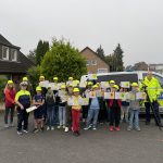 Mit leuchtend gelben Cappies und selbstgestalteten Dank- und Denkzetteln im Gepäck erlebte unsere Klasse 4 am Dienstag, den 09. September 2025, einen besonderen Schultag: Sie nahm an der Verkehrssicherheitsaktion „Kreis Steinfurt sieht gelb“, eine Initiative der Verkehrskonferenz des Schulamts für den Kreis Steinfurt zusammen mit der Kreisverkehrswacht und Radio RST, teil. Obwohl das Wetter eher grau war und vom Himmel hin und wieder Regen tropfte, ließ sich die Klasse die gute Laune nicht verderben.