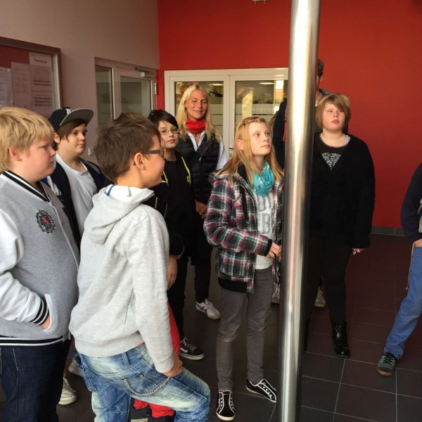 [infobox color=”darkgray”][two-columns]Wir die Klasse 6 haben am Montag, den 26.10.2015 die Feuerwehr in Ibbenbüren besichtigt. Wir mussten noch ein bisschen warten, weil wir zu früh waren. Dann kamen die Feuerwehrleute und wir redeten mit ihnen. Plötzlich ertönte ein Alarm und ein Feuerwehrmann rutschte neben uns die Feuerwehrstange herunter. Ein anderer Feuerwehrmann hat uns dann weiter [button color=”lightgray” size=”small” align=”right”]Florian[/button]geführt. Wir haben uns einen Feuerwehrwagen und die Ausrüstung angeschaut. Auf einmal kamen die anderen Fahrzeuge von ihrem Einsatz zurück, es war ein Fehlalarm. Wir durften dann sogar in einen Wagen hinein gehen. Danach sind wir in eine andere Halle zu einem Rettungswagen gegangen. Dort hat uns der Rettungssanitäter gezeigt, wie jemand verarztet wird. Dafür wurde Sinan eine Halskrause und eine Armschiene angelegt. Dann haben sie aus der Schiene die Luft heraus gesaugt und dadurch wurde sie hart und stabilisierte den Arm. Danach sind wir in den Hinterhof der Feuerwehr gegangen und haben dort zugesehen wie ein Leiterwagen eine Leiter ausgefahren hat. Dabei befand sich ein Feuerwehrmann vorne in der Gondel. Die ausgefahrene Leiter betrug 30 Meter. Zum Schluss durften wir in einem Feuerwehrwagen mitfahren. Der Feuerwehrmann hat für die Fahrt das Blaulicht und die Sirene angestellt.[/two-columns][/infobox]