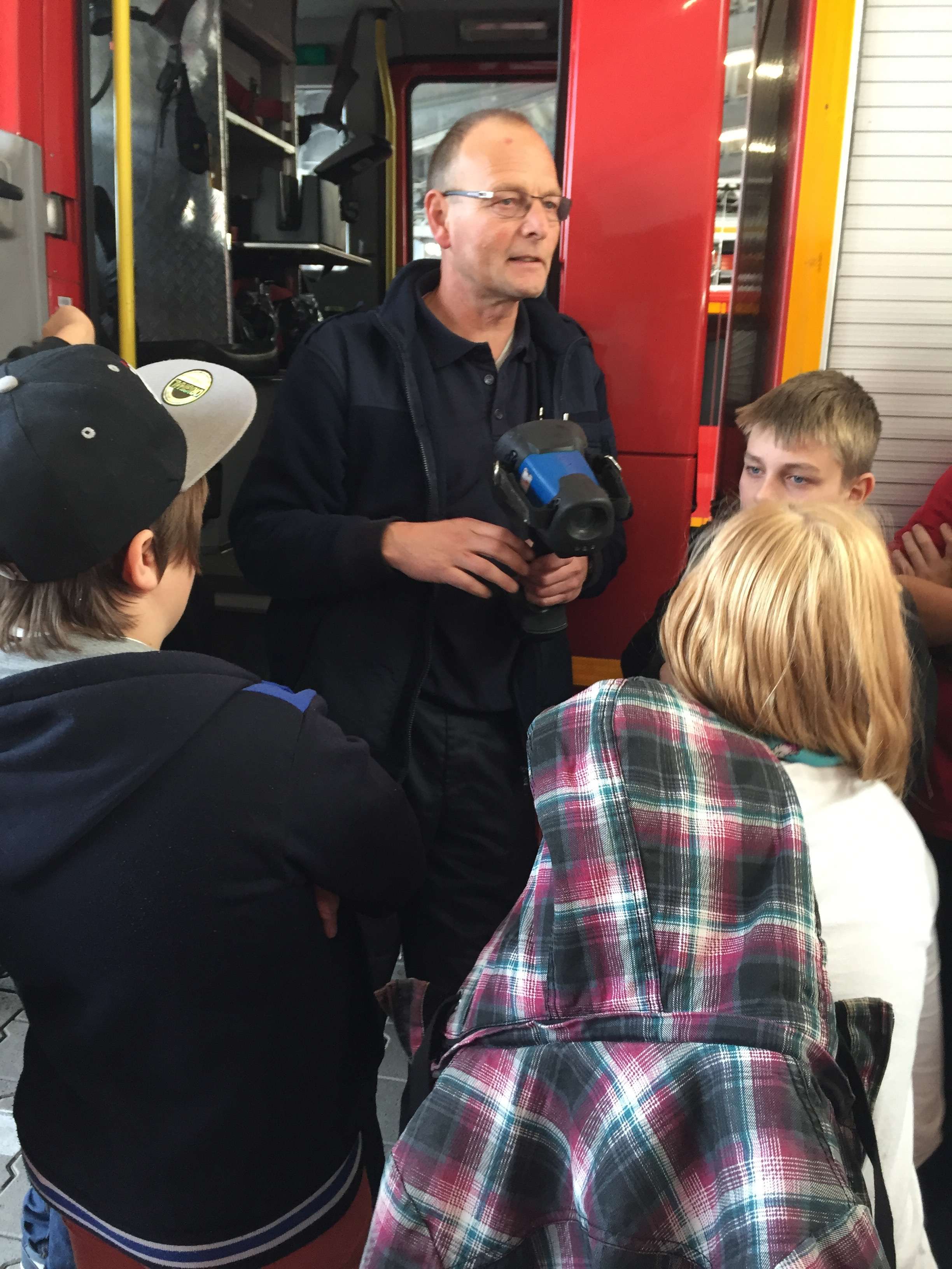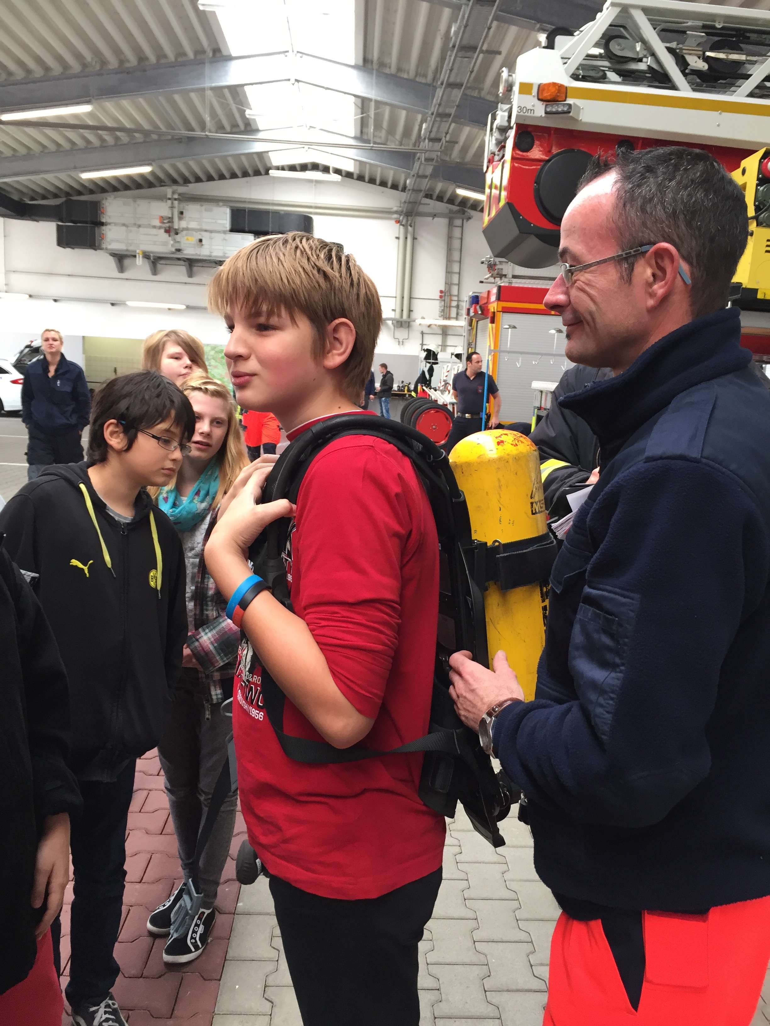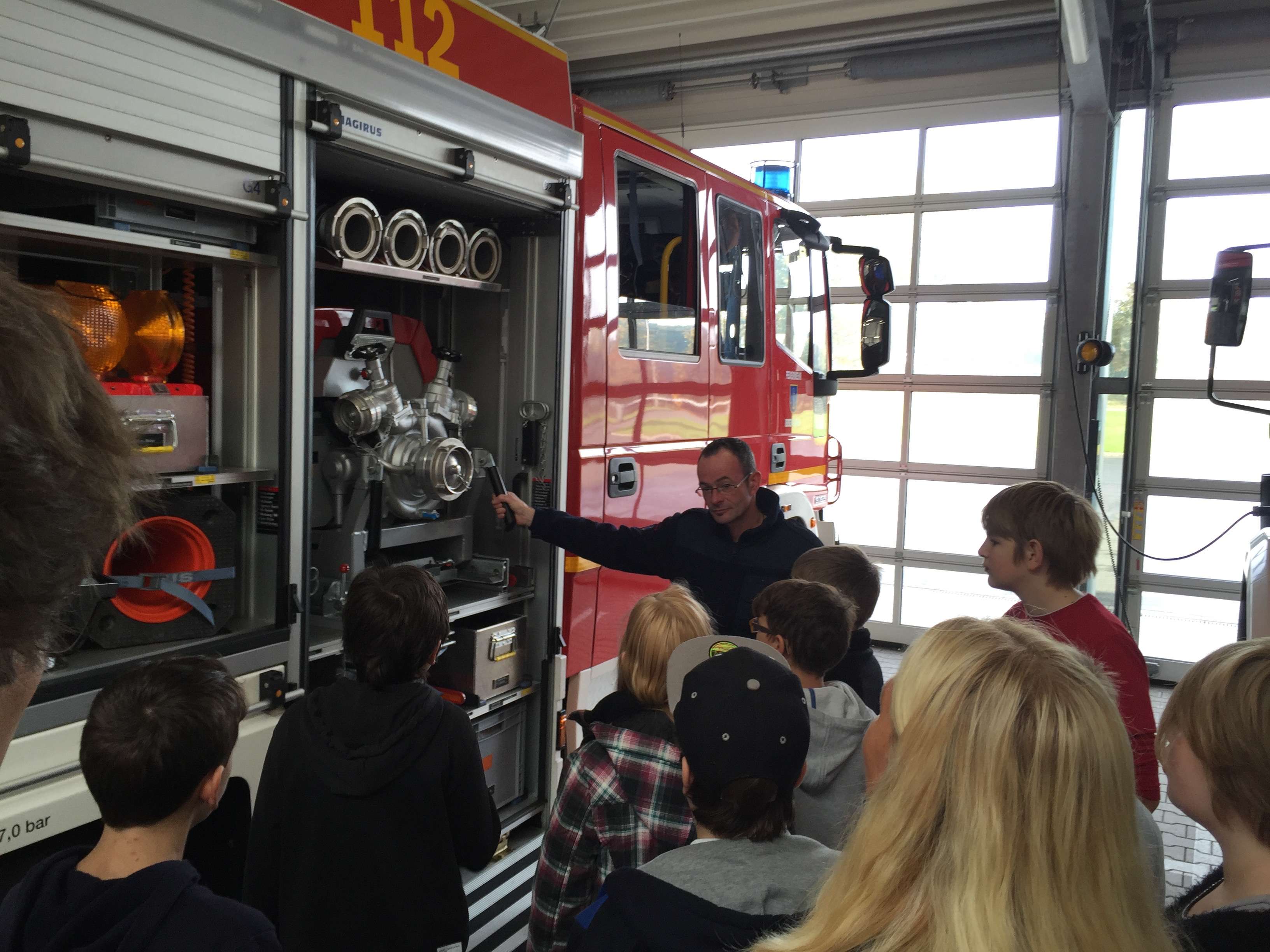 [infobox color=”lightgray”][two-columns]Am Montag, den 26.10.2015 besuchten wir die Feuerwehr in Ibbenbüren. Im Flur erklärte uns ein Feuerwehrmann den Aufbau der Feuerwehr und die wichtigsten Abläufe. Dann ging plötzlich der Alarm los. Man hörte durch die Sprechanlage, dass ein Feuer im Altenheim ausgebrochen war. Auf einmal kam ein Feuerwehrmann die Feuerwehrstange [button color=”darkgray” size=”small” align=”right”]Maximilian[/button]hinunter gerutscht. Dann rückte der erste Wagen aus. Als sie zurück kamen, stellte sich heraus, dass es nur ein Fehleinsatz gewesen war. Dann schauten wir uns die Ausrüstung in einem Feuerwehrauto an und durften alle einmal eine Sauerstoffmaske aufsetzen und einen Sauerstoffbehälter tragen. Wir erfuhren auch, dass die Feuerwehrleute bei Einsätzen immer eine Axt dabei haben. Danach gingen wir zum Rettungswagen. Dort wurde Sinan behandelt, um uns zu zeigen, wie eine Rettung abläuft. Er bekam eine Halskrause angelegt und durfte sie sogar behalten. Dann schauten wir uns an, wie eine Drehleiter ausgefahren wird. Am Ende wurden wir noch zu einer Fahrt mit dem Feuerwehrauto eingeladen. Zum Schluss sind wir mit dem Bus zur Schule zurückgefahren.[/two-columns][/infobox]