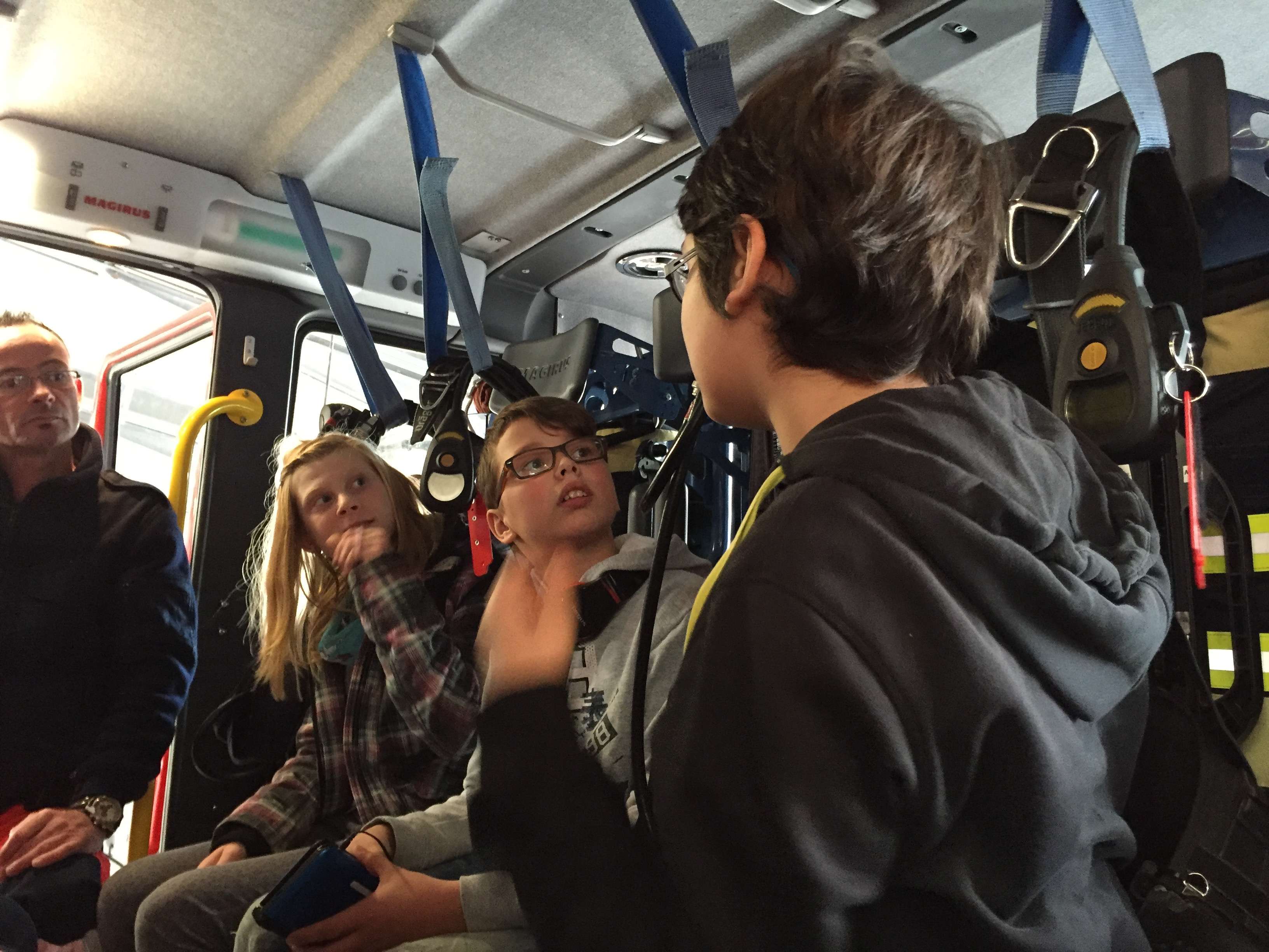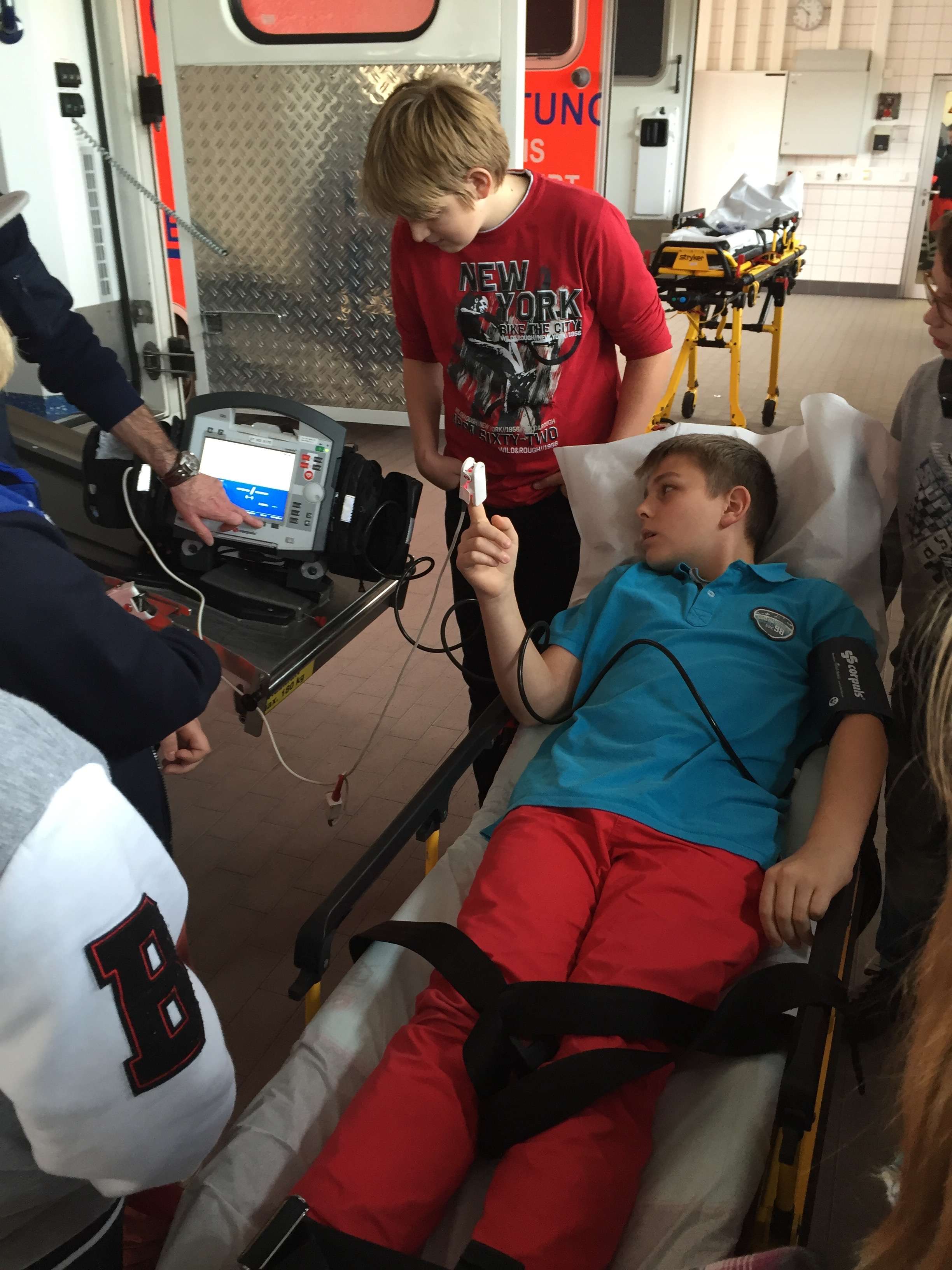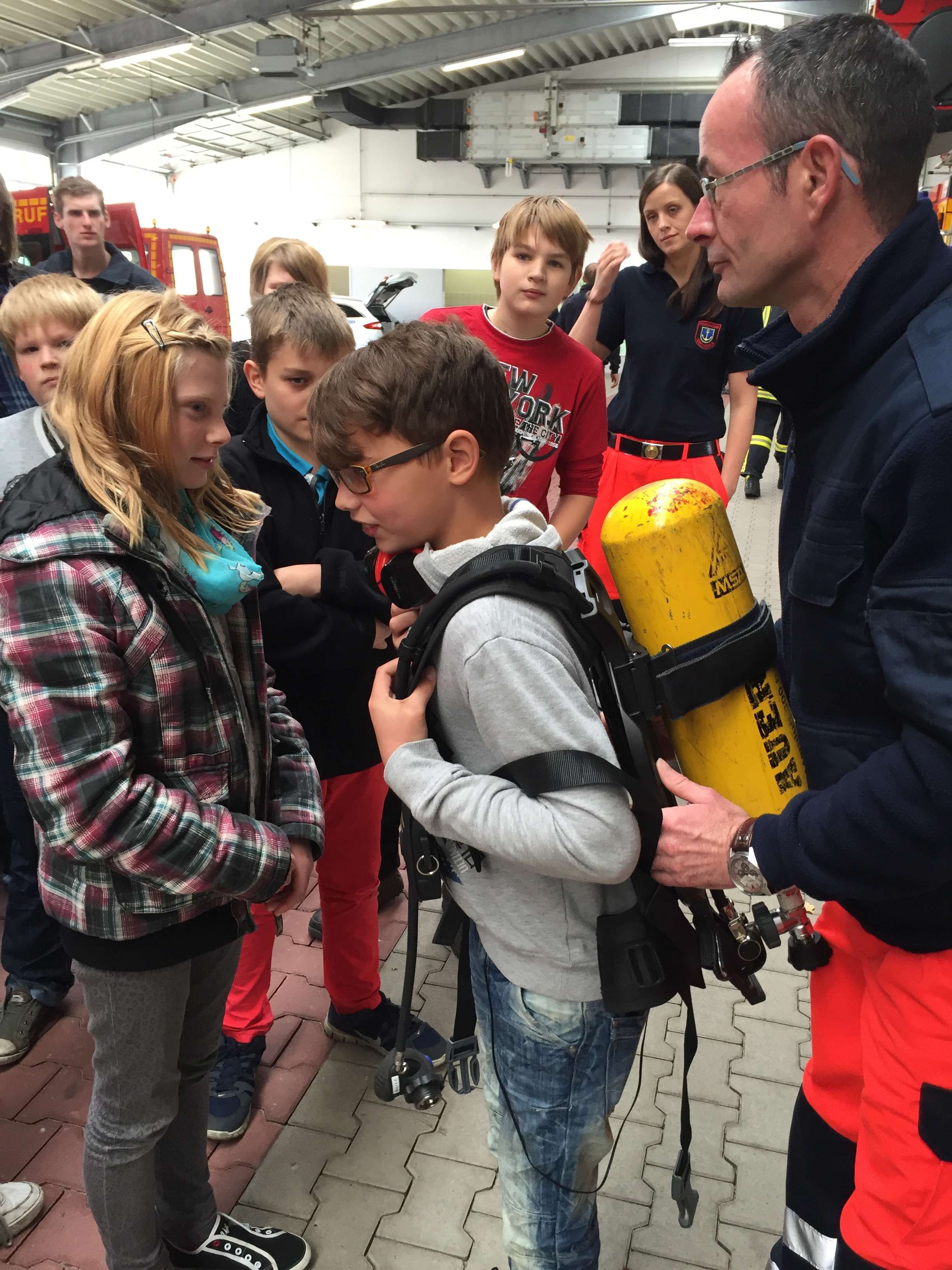 [infobox color=”lightgray”][two-columns]Am Montag, den 26.10.2015 besuchten wir die Feuerwehr in Ibbenbüren. Im Flur erklärte uns ein Feuerwehrmann den Aufbau der Feuerwehr und die wichtigsten Abläufe. Dann ging plötzlich der Alarm los. Man hörte durch die Sprechanlage, dass ein Feuer im Altenheim ausgebrochen war. Auf einmal kam ein Feuerwehrmann die Feuerwehrstange [button color=”darkgray” size=”small” align=”right”]Maximilian[/button]hinunter gerutscht. Dann rückte der erste Wagen aus. Als sie zurück kamen, stellte sich heraus, dass es nur ein Fehleinsatz gewesen war. Dann schauten wir uns die Ausrüstung in einem Feuerwehrauto an und durften alle einmal eine Sauerstoffmaske aufsetzen und einen Sauerstoffbehälter tragen. Wir erfuhren auch, dass die Feuerwehrleute bei Einsätzen immer eine Axt dabei haben. Danach gingen wir zum Rettungswagen. Dort wurde Sinan behandelt, um uns zu zeigen, wie eine Rettung abläuft. Er bekam eine Halskrause angelegt und durfte sie sogar behalten. Dann schauten wir uns an, wie eine Drehleiter ausgefahren wird. Am Ende wurden wir noch zu einer Fahrt mit dem Feuerwehrauto eingeladen. Zum Schluss sind wir mit dem Bus zur Schule zurückgefahren.[/two-columns][/infobox]