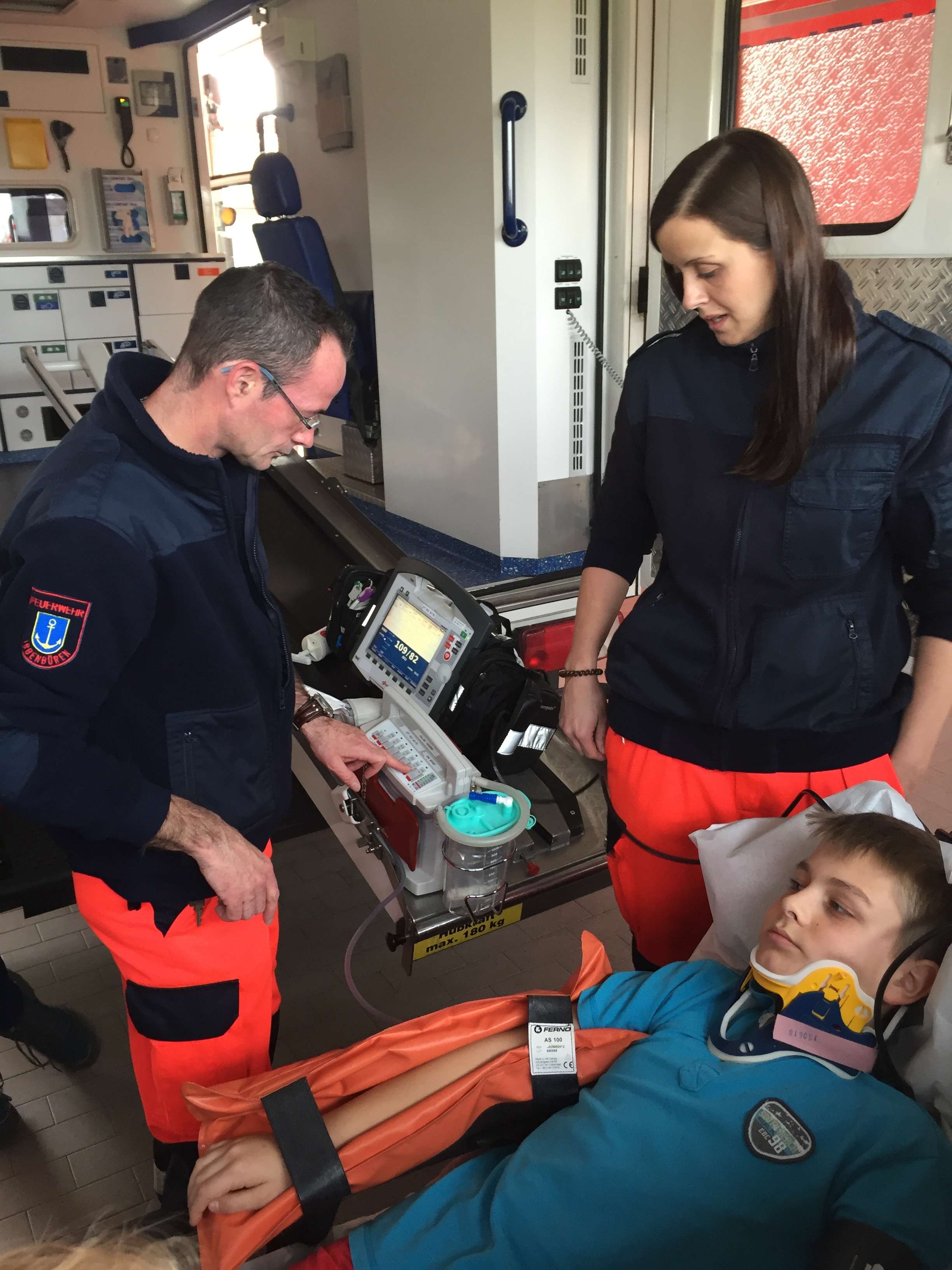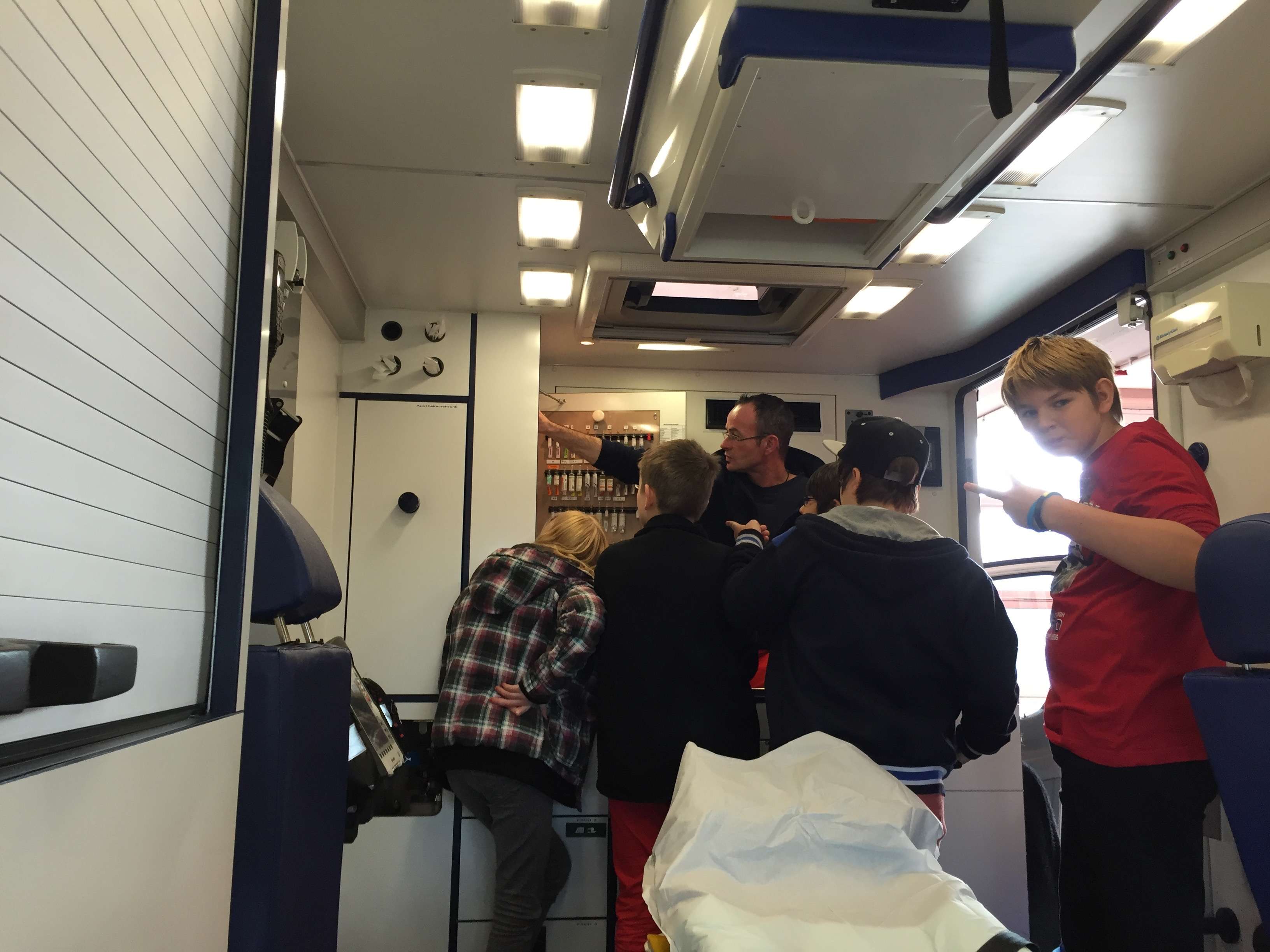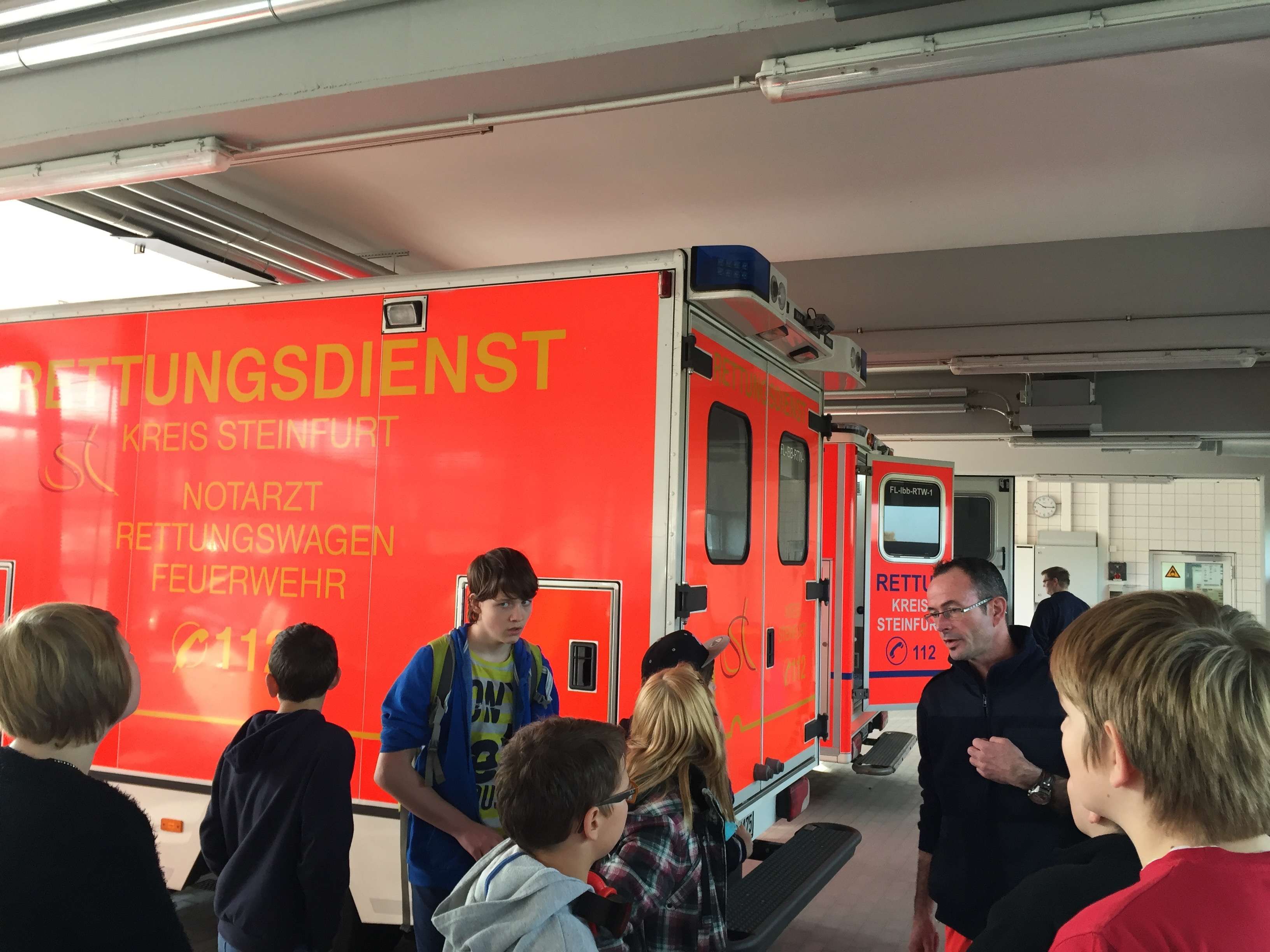 [infobox color=”lightgray”][two-columns]Am Montag, den 26.10.2015 haben wir, die Klasse 6, die Feuerwehr in Ibbenbüren besichtigt. Als erstes hat uns der Leiter der Feuerwehr die Regeln erklärt, die wir auf jeden Fall einhalten sollten. Auf einmal schrillte die Alarmglocke. Wir gingen zur Seite, denn die Feuerwehrmänner liefen eilig an uns vorbei in die Halle zu den Feuerwehrautos. Der Leiter musste nun auch weg. Doch dann kam ein anderer Mitarbeiter – ein Rettungssanitäter – und wir konnten unsere Besichtigung fortsetzen. [button color=”darkgray” size=”small” align=”right”]Kilian[/button]Wir gingen durch den Umkleidebereich, indem einige Feuerwehrleute gerade frühstückten, in die Halle. Dort standen viele verschiedene Feuerwehrautos. Wir konnten noch sehen, wie einige Feuerwehrmänner mit dem Einsatzwagen weg fuhren. Der Rettungssanitäter ging mit uns zu einem großen Feuerwehrauto. Dort gab es viele Gegenstände zu sehen wie zum Beispiel Schläuche und Behälter. Wir duften sogar in das Fahrzeug hinein klettern. Im Inneren zeigte er uns ein Atemschutzgerät. Danach kamen die Feuerwehrleute vom Einsatz zurück. Der Leiter erklärte uns, dass es ein Fehlalarm gewesen war. Wir gingen gemeinsam zu einer Halle, in der die Rettungswagen standen. Der Rettungssanitäter zeigte uns praktisch, was bei einer Rettung unternommen wird. Dabei wurde einem Mitschüler eine Schiene und sogar eine Halskrause angelegt. Zusätzlich wurde der Blutdruck gemessen. Danach wurde uns die Drehleiter eines großen Leiterwagens gezeigt. Zum Schluss durften wir in einem Feuerwehrauto mitfahren. Danach ging es mit Taxen zurück zur Schule.[/two-columns][/infobox]
