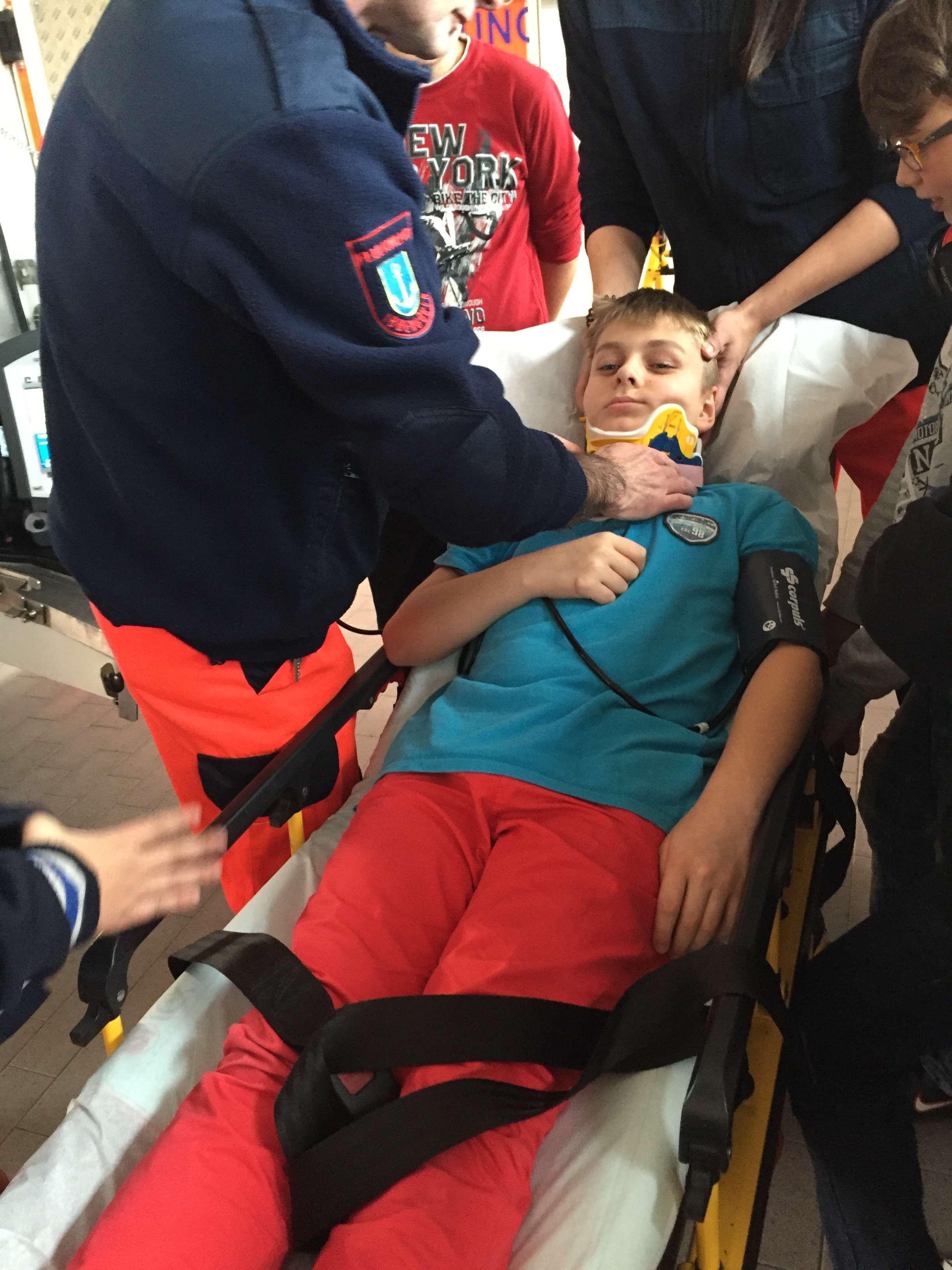 [infobox color=”darkgray”][two-columns]Am Montag, den 26.10.2015 sind wir, die Klasse 6, mit dem Bus zur Feuerwehr nach Ibbenbüren gefahren. Dort hat uns ein Feuerwehrmann in Empfang genommen. Als wir im Eingangsbereich standen, ertönte plötzlich ein Alarm. Wir hörten über die Durchsage, dass es in einem Altersheim brennt. Wir sind schnell zur Seite gegangen. Schon ein paar Sekunden später kam ein Feuerwehrmann die Rettungsstange [button color=”lightgray” size=”small” align=”right”]Marvin[/button]hinunter gerutscht. Danach hat uns ein anderer Mann, ein Rettungssanitäter, weiter herum geführt. Wir sind mit ihm in eine große Halle gegangen. Dort standen sehr viele Feuerwehrautos und Boote. Der Rettungssanitäter hat uns die Ausrüstung gezeigt, die sich in einem Feuerwehrwagen befindet. Nachdem er uns alles erklärt hatte, sind wir in die Rettungshalle gelaufen. Dort wurde uns alles gezeigt und erklärt. Der Rettungssanitäter fragte uns, wer sich behandeln lassen möchte. Er holte eine Trage und ein Schüler legte sich darauf. Dem Schüler wurde eine Schiene um seinen Arm gelegt. Zudem hat er eine Halskrause bekommen, die er behalten durfte. Nach der Behandlung sind wir nach draußen gegangen. Dort stand ein sehr großes Feuerwehrauto und hat eine 30 Meter lange Leiter ausgefahren. Zum Schluss sind wir mit einem Feuerwehrwagen und Blaulicht um die Halle gefahren.