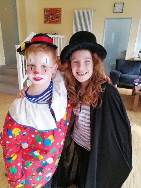 Als erstes haben wir Eintrittskarten gebastelt. Danach haben wir uns einen Namen überlegt. Es wurde viel trainiert. Wir waren Clowns, Akrobaten und Zauberer. Am Ende haben wir unsere Eltern und Klasse 1+2 in unseren Zirkus eingeladen.