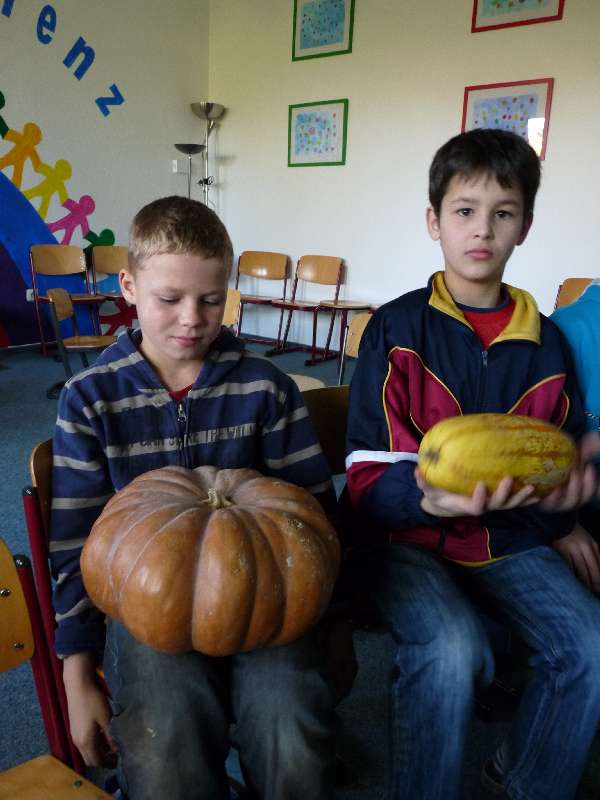 Es gab auch eine Kürbisgruppe. Diese Gruppe hat verschiedene Kürbisse kennengelernt, z.B. den Big Mama Kürbis und den Spaghettikürbis.