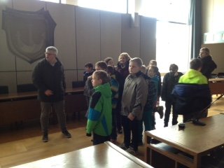 Am 26.02.2016 hatten wir eine Stadtführung. Es wurde uns ein Überblick über die Stadt Ibbenbüren gegeben. Auch den Stadtrat im Rathaus haben wir bewundert. Als wir durch die Stadt wanderten und an einer Kirche hielten, an der tausende von Löchern waren, hat Dr. Kriege erzählt, dass es dort auf dem Platz früher einen Friedhof gab.