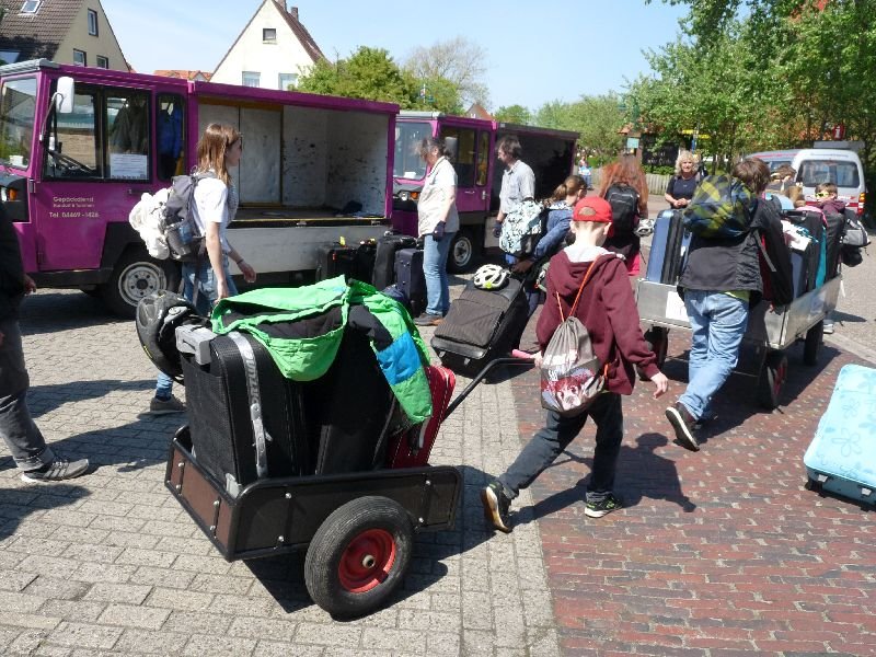 Freitag mussten wir Sachen packen und putzen und dann ging es mit der Bimmelbahn zur Fähre, weiter mit dem Schiff und den Bullis zurück zur Schule, wo unsere Eltern uns abgeholt haben.
