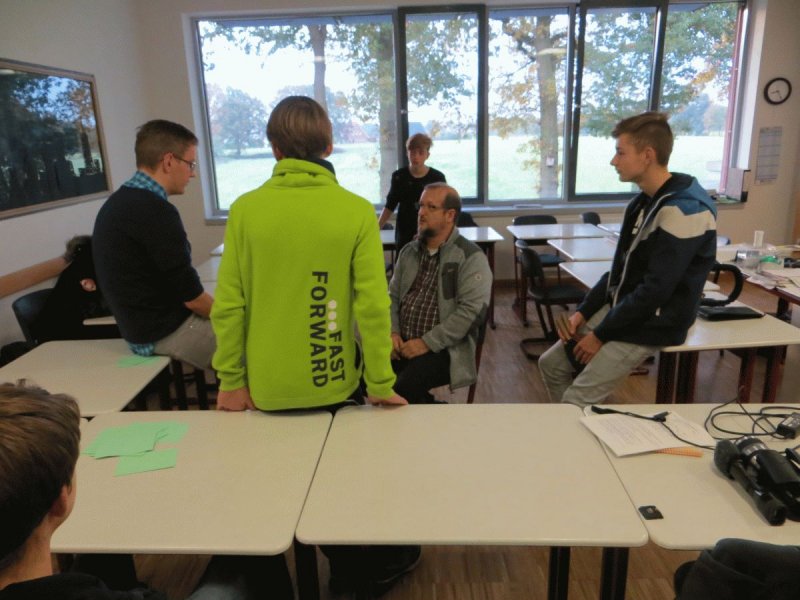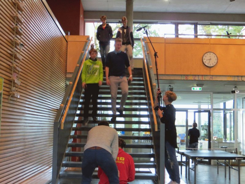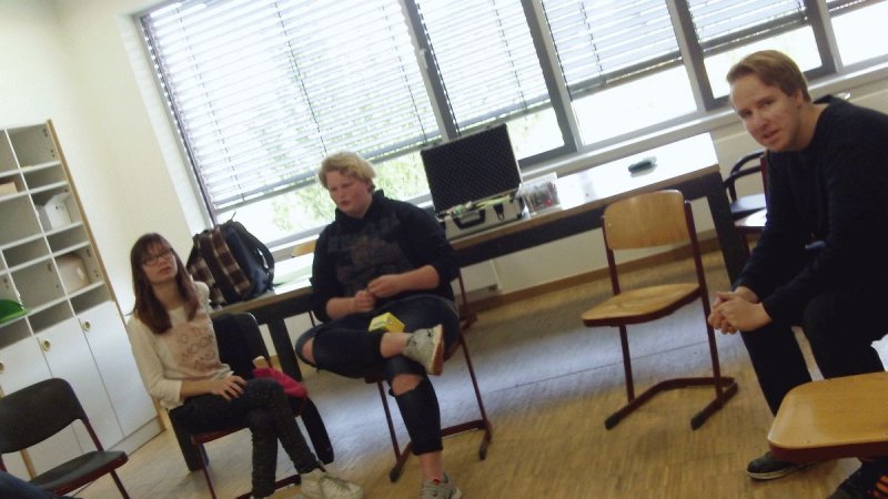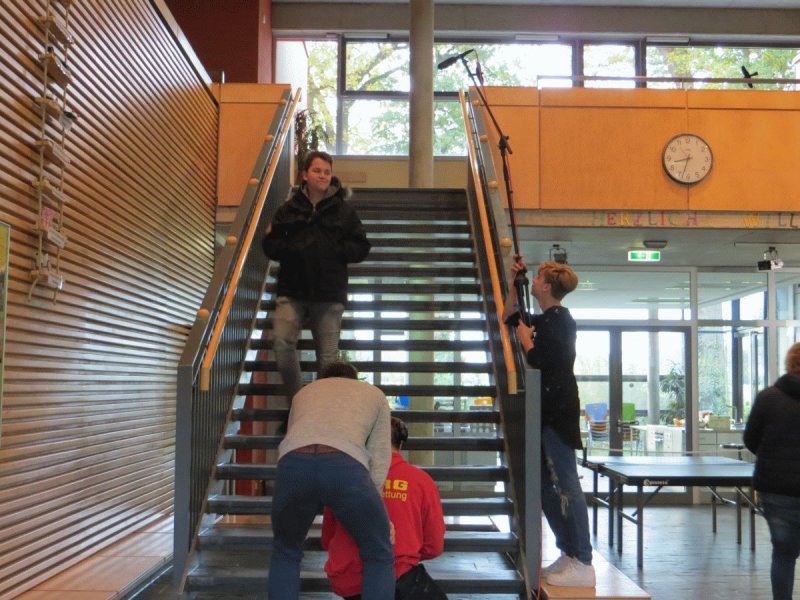 In der zweiten Gruppe sollte ein Kurzfilm zum Thema erstellt werden. Die Schülerinnen und Schüler erarbeiteten eine Geschichte und entwickelten die Szenen, die dann gefilmt werden sollten. Die technische Ausrüstung wurde von Leo Dresnar und einigen Schülern zur Verfügung gestellt. Das Ergebnis kann sich sehen lassen…